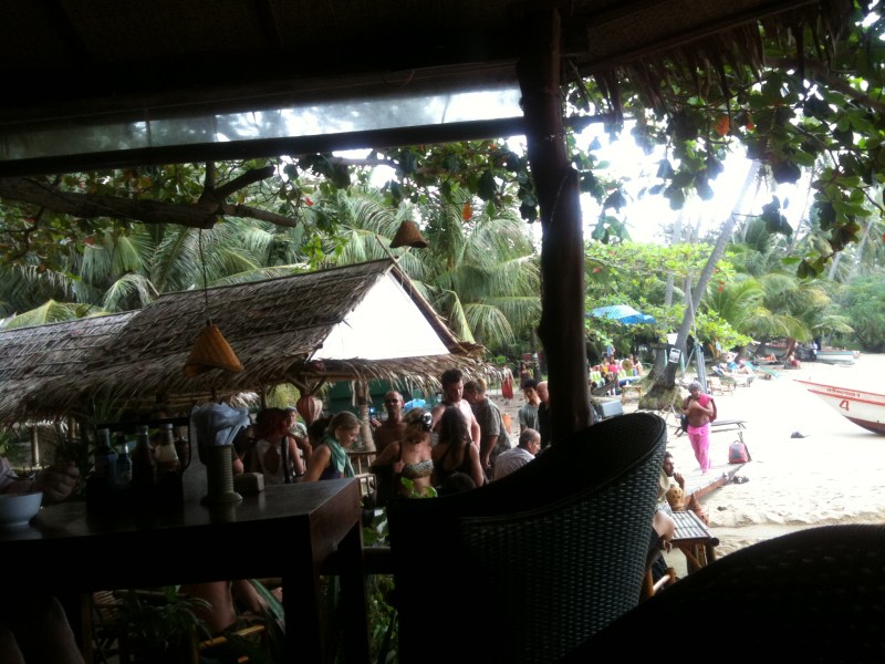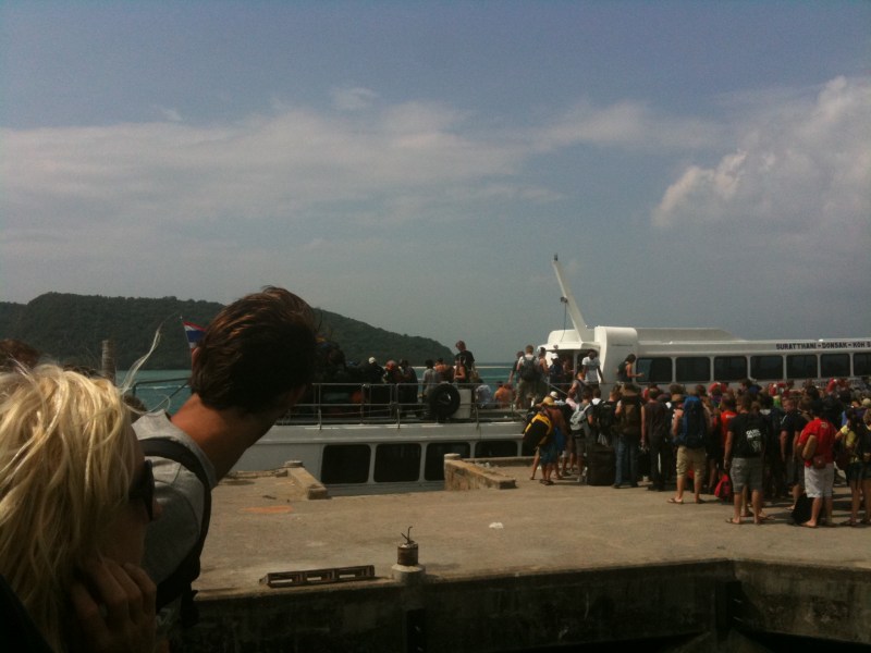 So here I am on the way to Koh Phangan, going to check up on some long lost relations. The path to all these beautiful beaches go through garbage strewn towns and filthy ports. On the bus ride to the ferry you pass monocrop palm tree platations. I wonder what the original forest looked like. The whole thing to me feels like prostitution of young girls – not much different – trotting out your natural beauty and letting foreigners pay to soil it. Westerners ruin everything. If everyone here is so groovy-hippie, why don’t we all stay home and save the Earth instead?