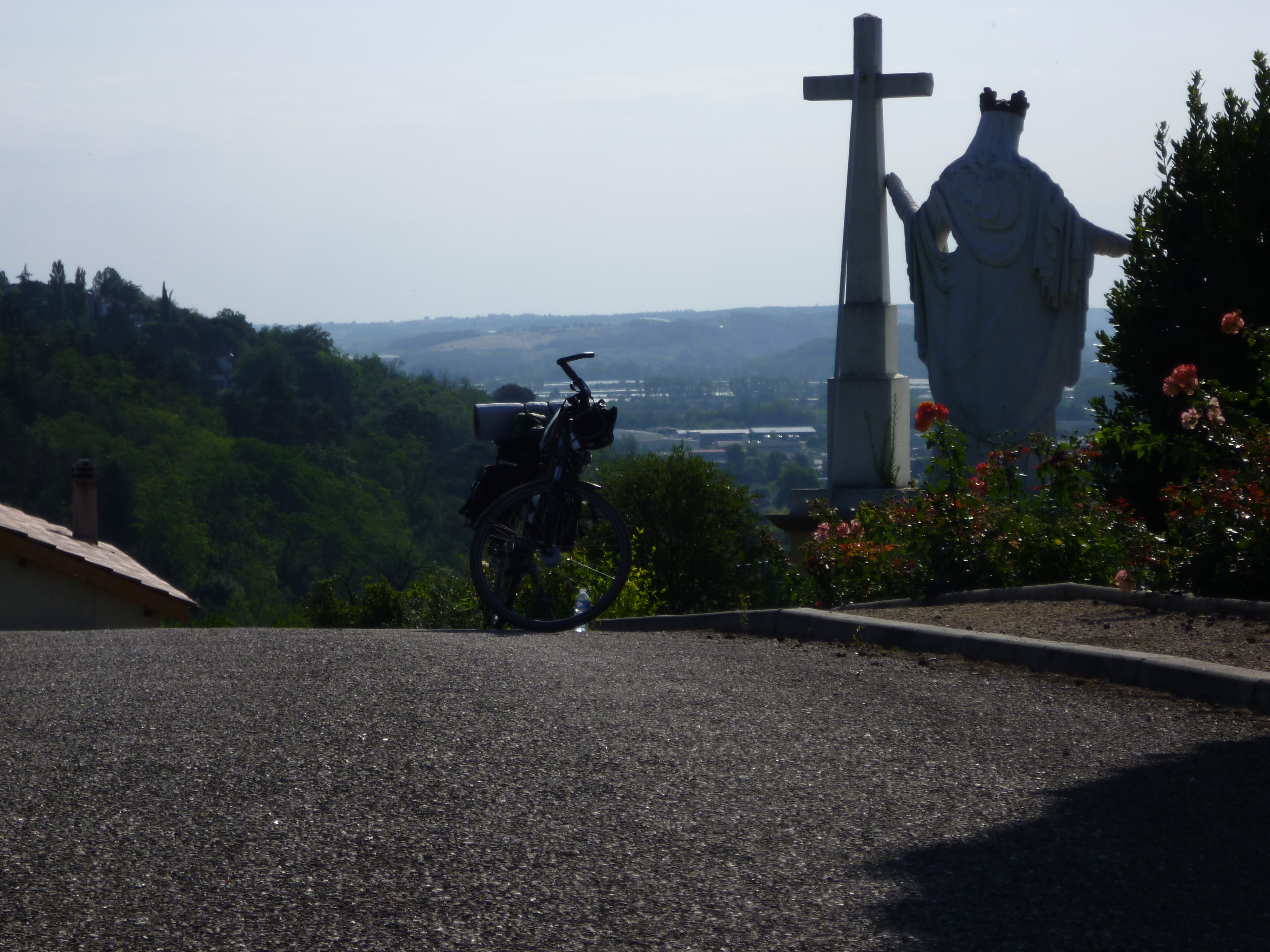 The next day two wonderful things happened.  When I woke up, the host had cooked me an egg! In France, breakfast is a sad, tiny affair.  That morning I had my first egg for breakfast in 3 months.  I nearly cried.  Then, as I packed up my bike to go, I decided to check out that viewpoint after all. And it was beautiful.