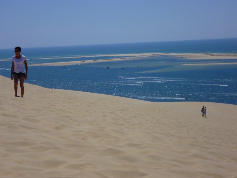 I get to the dune.  The lady tells me it’s not wise to trek down to the beach on the other side in this heat, that I should bike to the other beach instead.  I compromise and go to the top of the dune and then back down it, using the staircase.